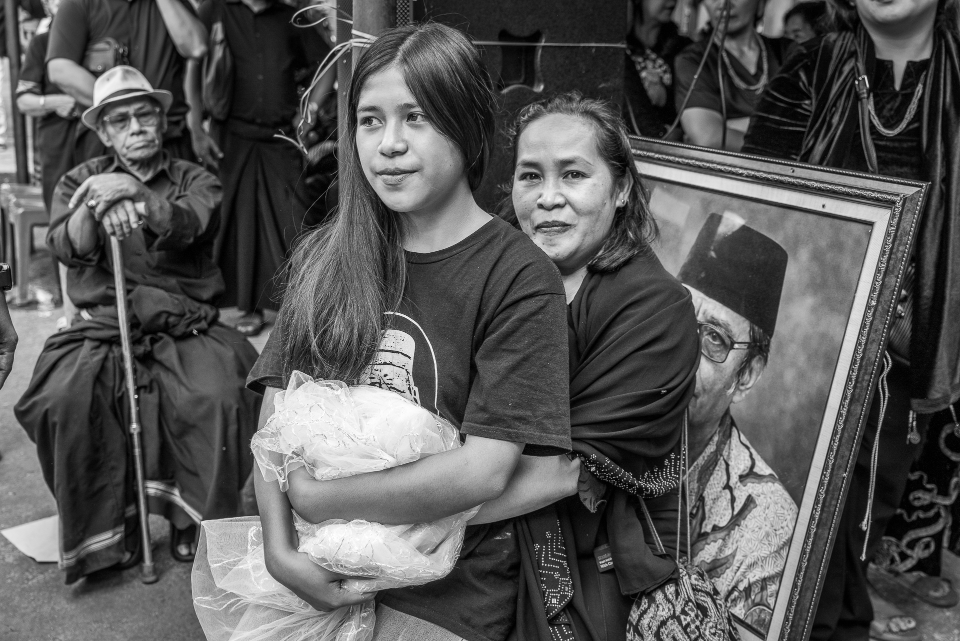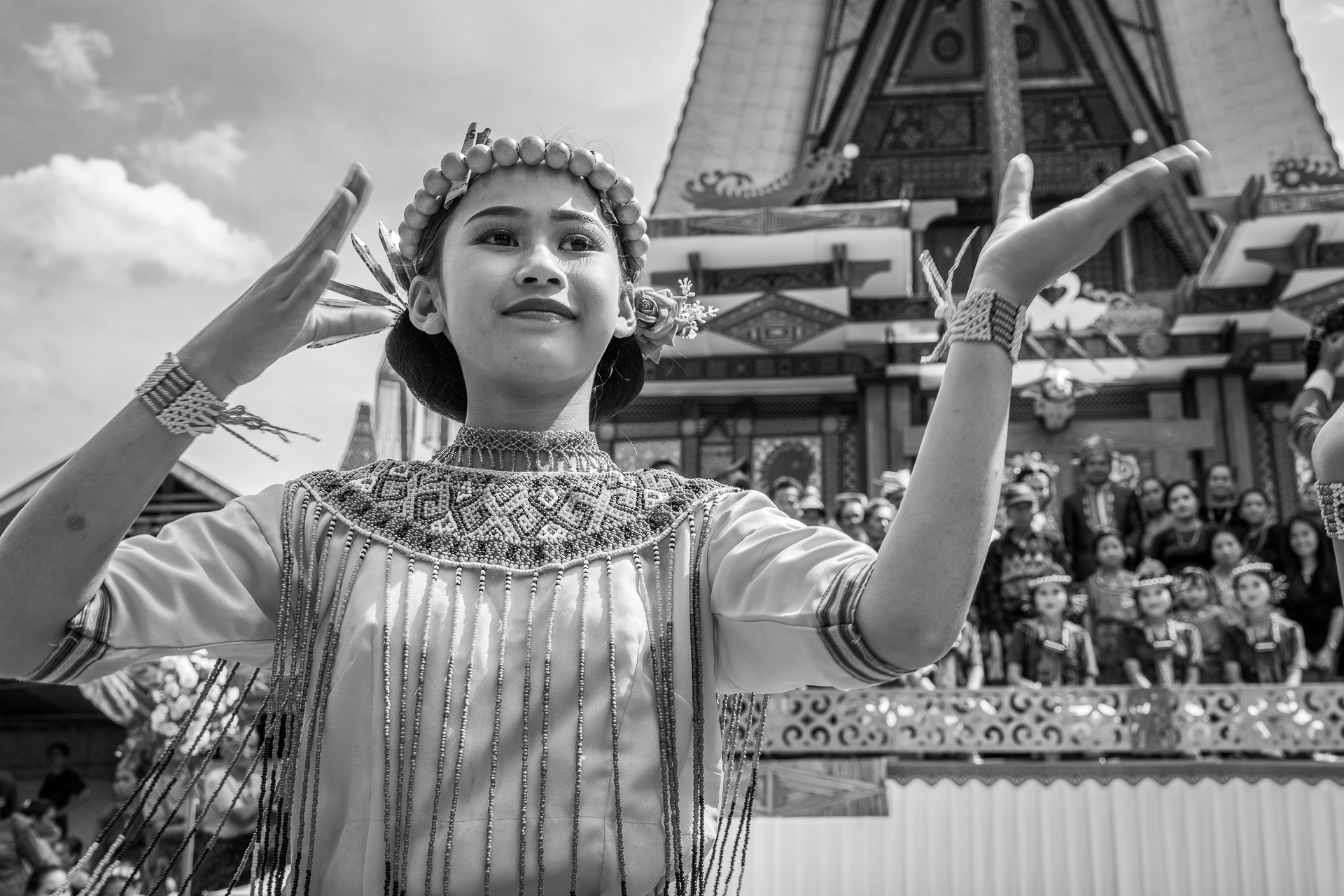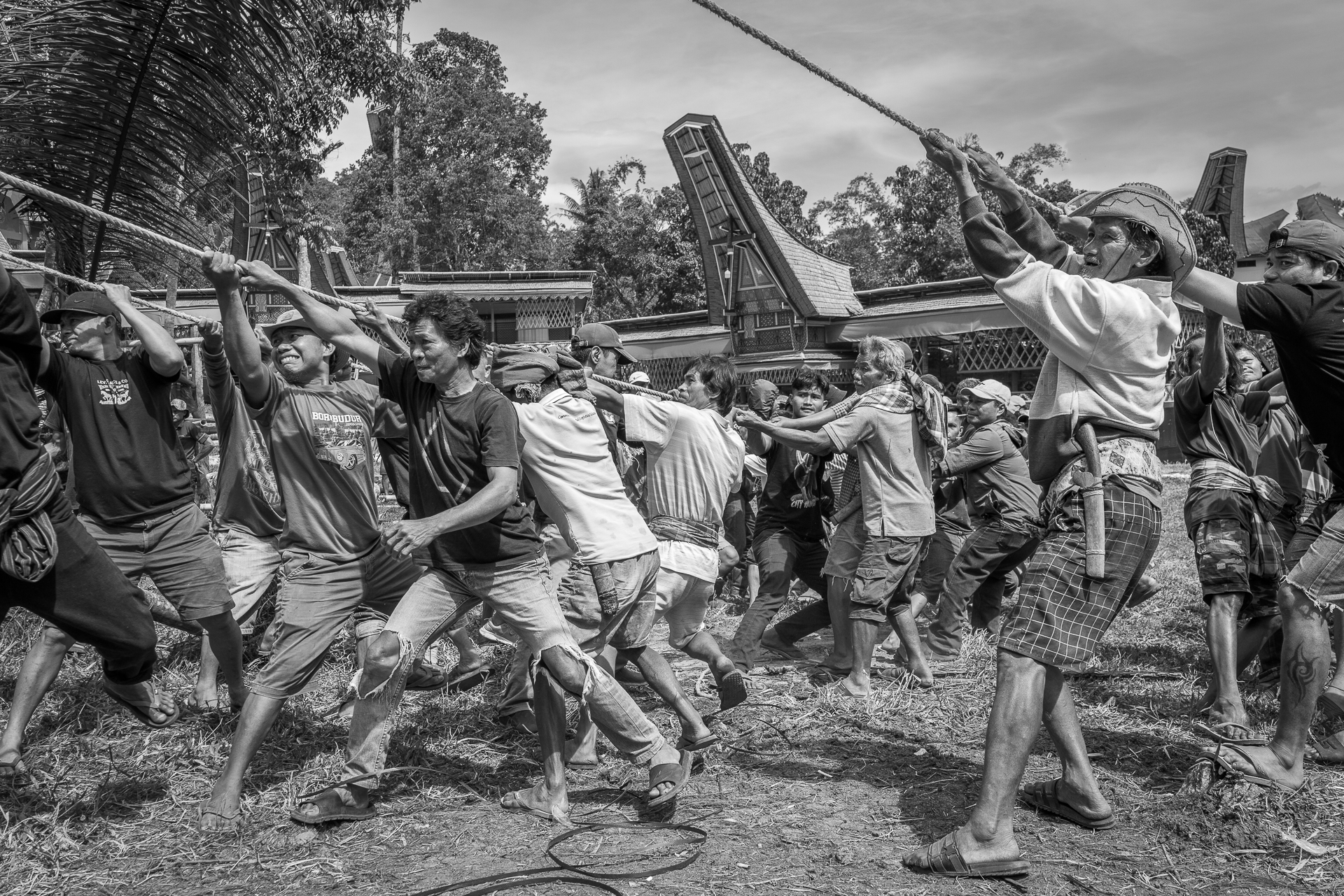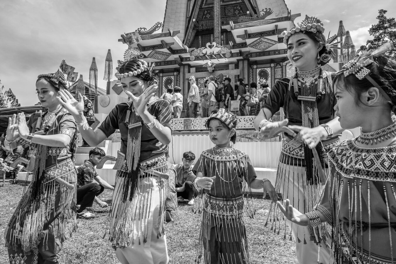 Im Hochland von Tana Toraja verändert sich alles. Die Landschaft wird dramatisch, die Luft kühler. Hier begegnen wir zuerst dem Tod. Ich fotografiere Totenfeiern, die sich über mehrere Tage erstrecken. Verstorbene bleiben oft monatelang oder jahrelang im Haus der Familie. Einbalsamiert. Versorgt. Anwesend. Die Zeremonien sind groß, intensiv, gemeinschaftlich. Büffel und Schweine werden geopfert und der Abschied wird sichtbar. Christine und ich besuchen zahlreiche Grabstätten, einige davon hunderte Jahre alt. Kete Kesu und Londa ist einer der bedeutendsten Orte. Bis zu 800 Jahre alte Särge hängen regungslos an einer steilen Felswand. Totenschädel sind allgegenwärtig, offen und sichtbar. Der Tod ist hier kein Ende, sondern Erinnerung.