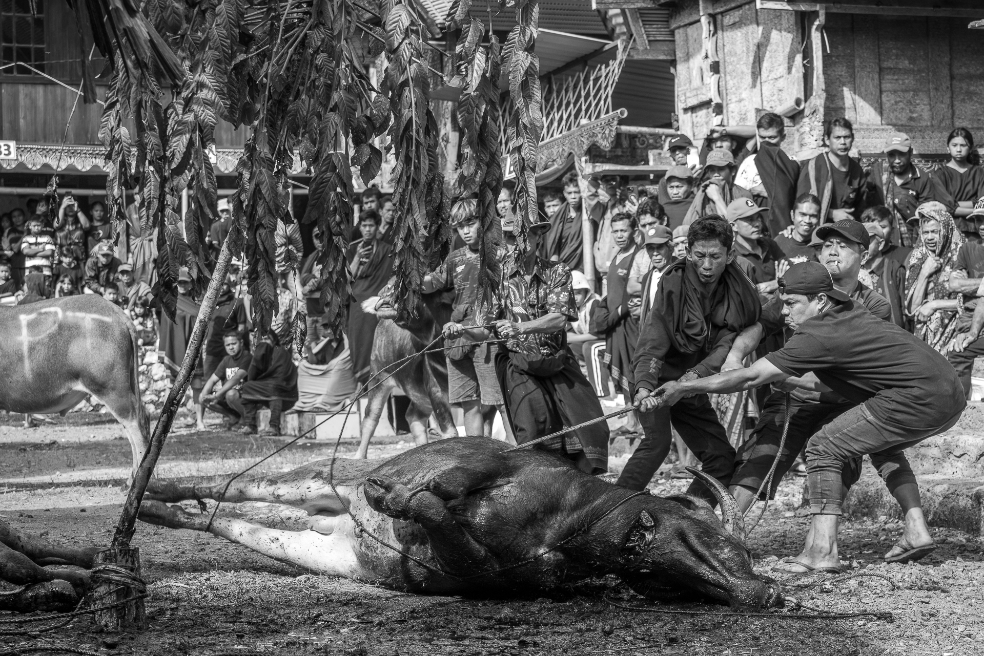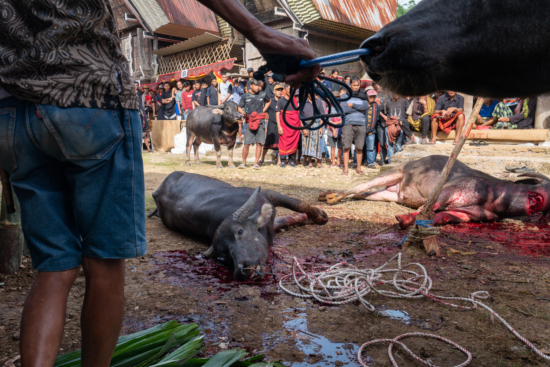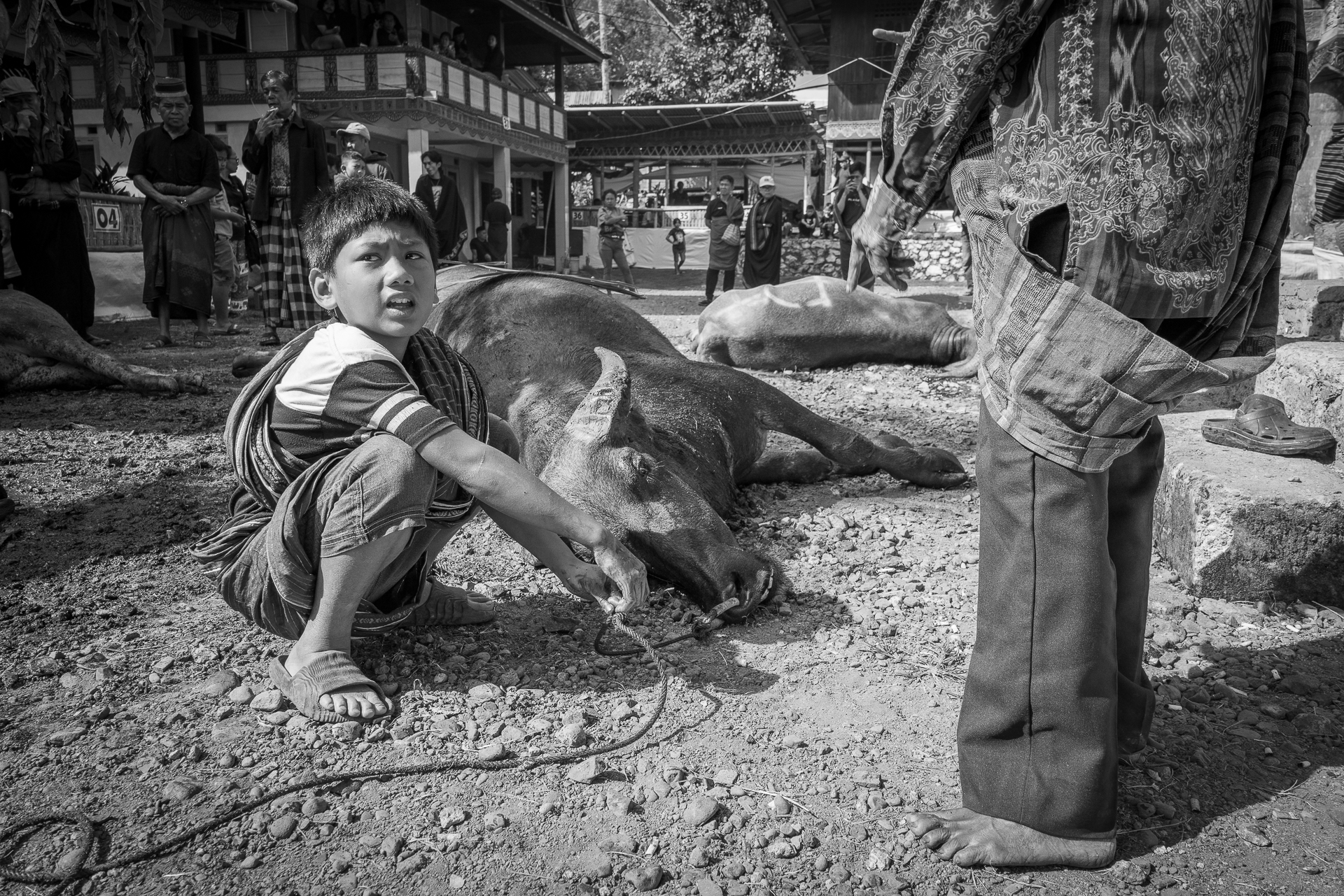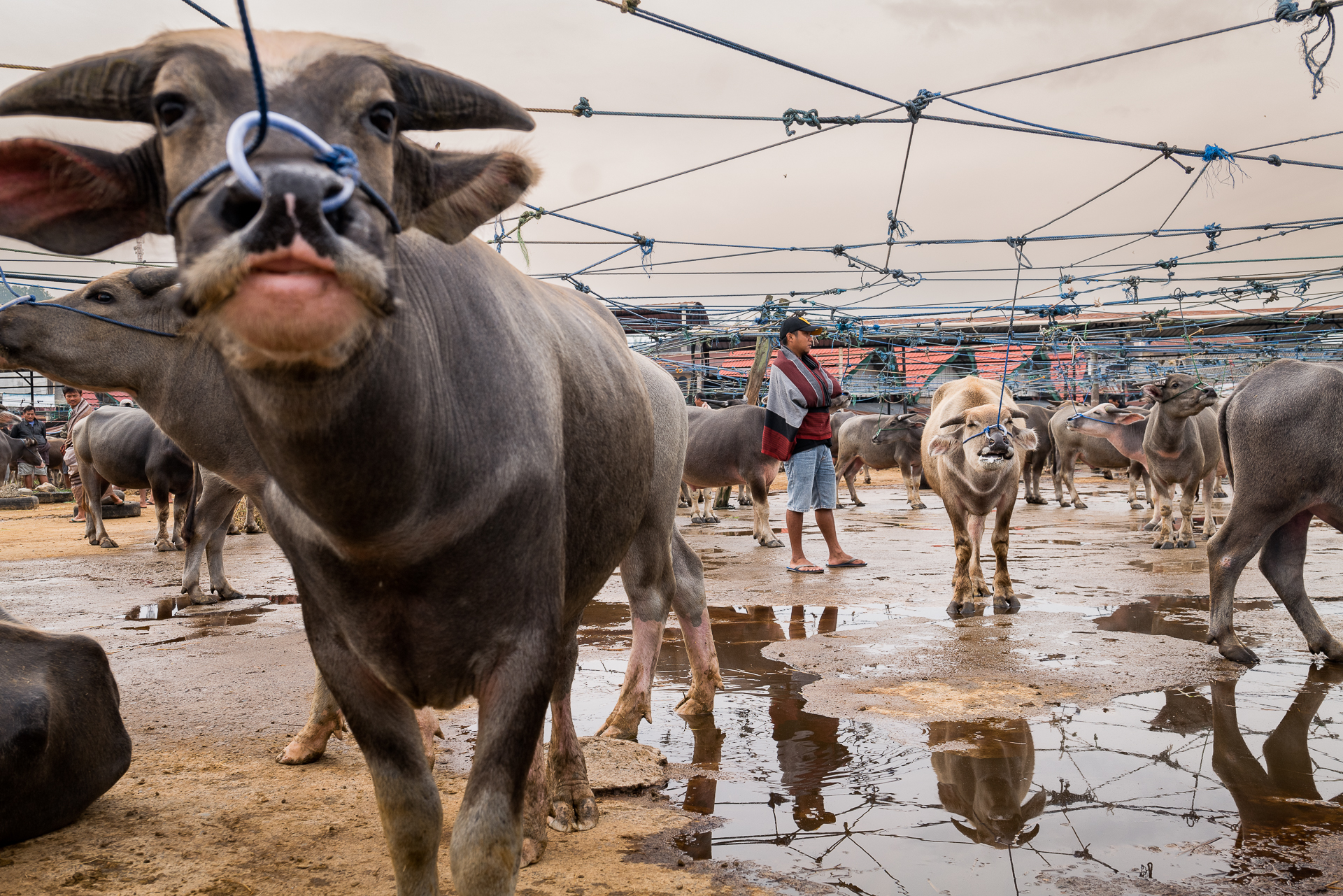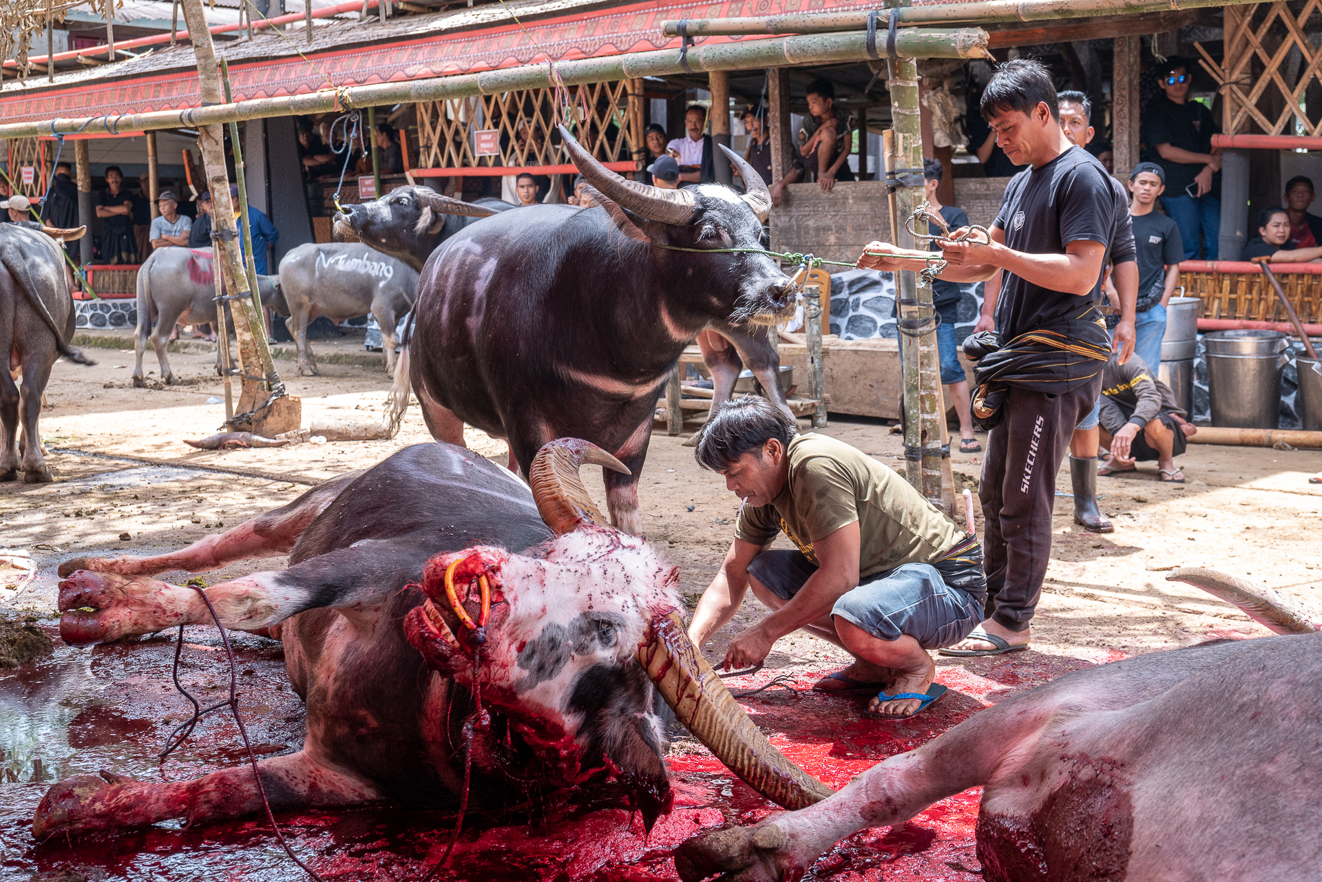 Auf dem Bolu-Markt in Rantepao werden Büffel, Schweine und Hühner gehandelt. Tiere für Rituale, für Abschied, für Status.
