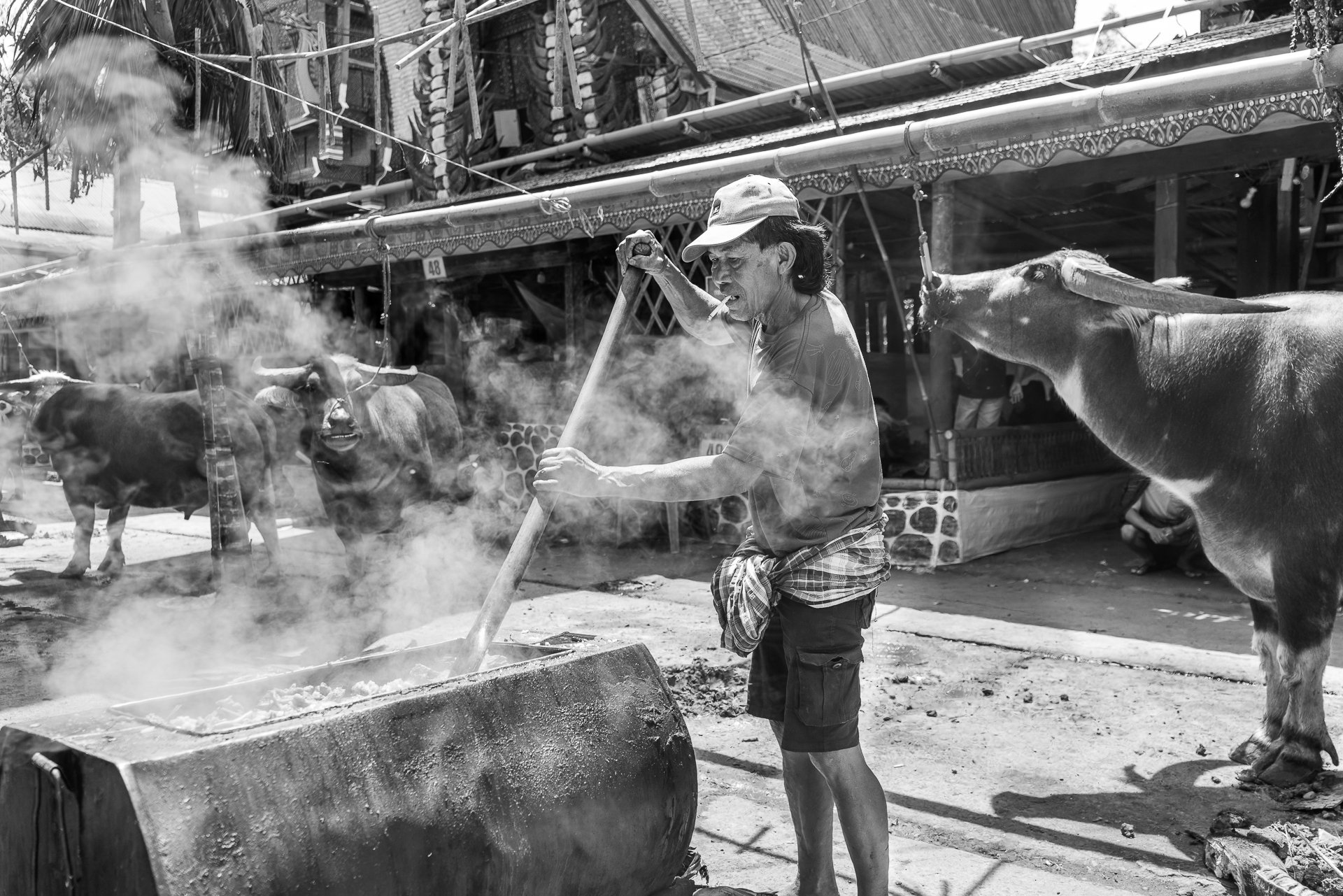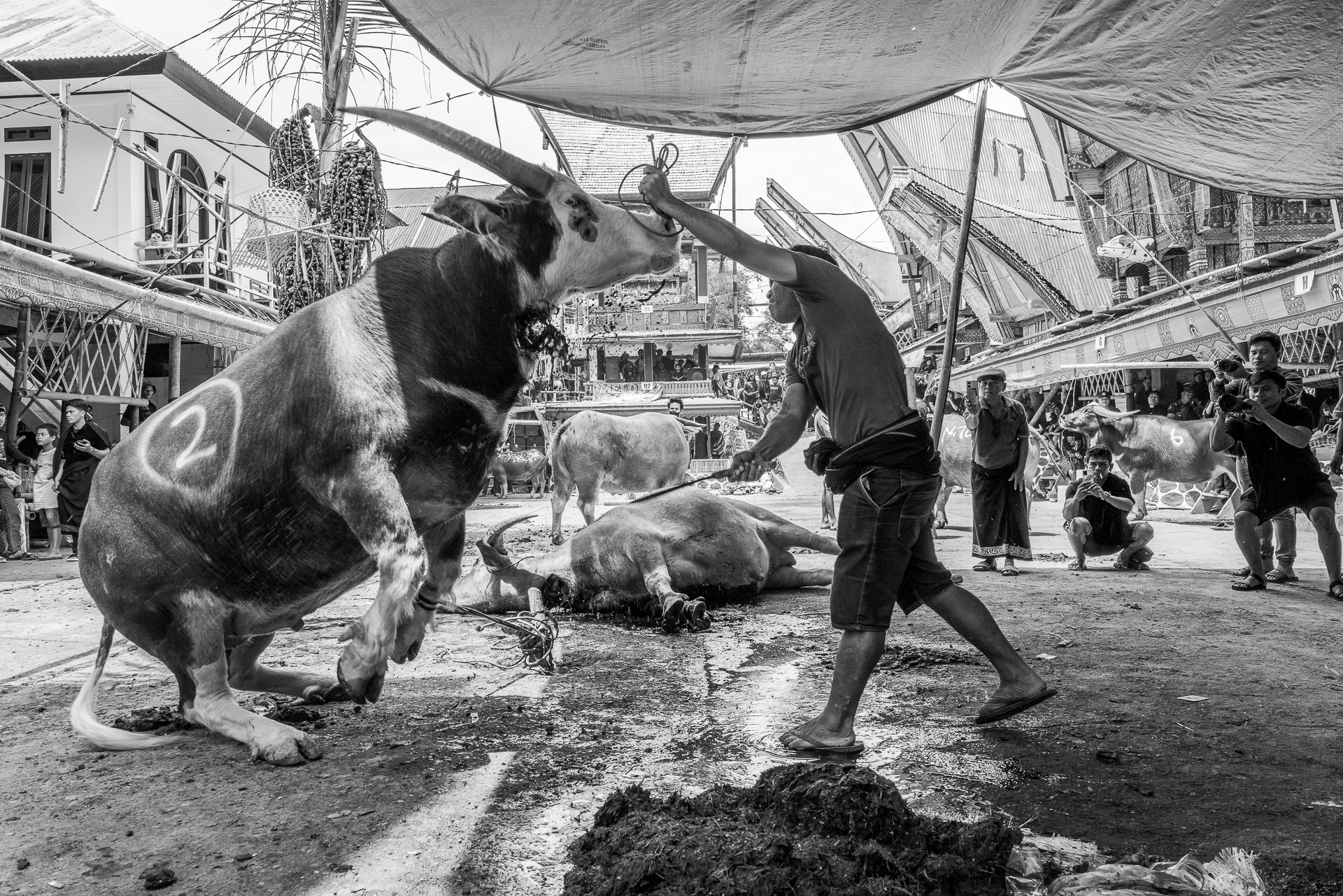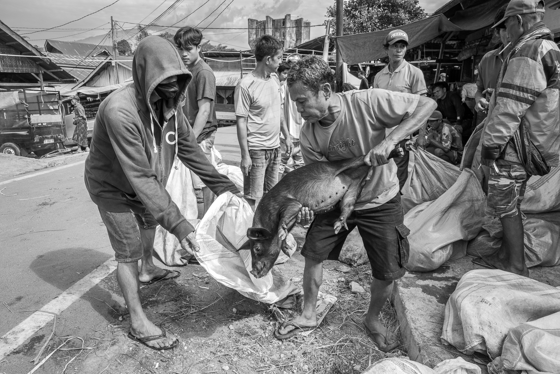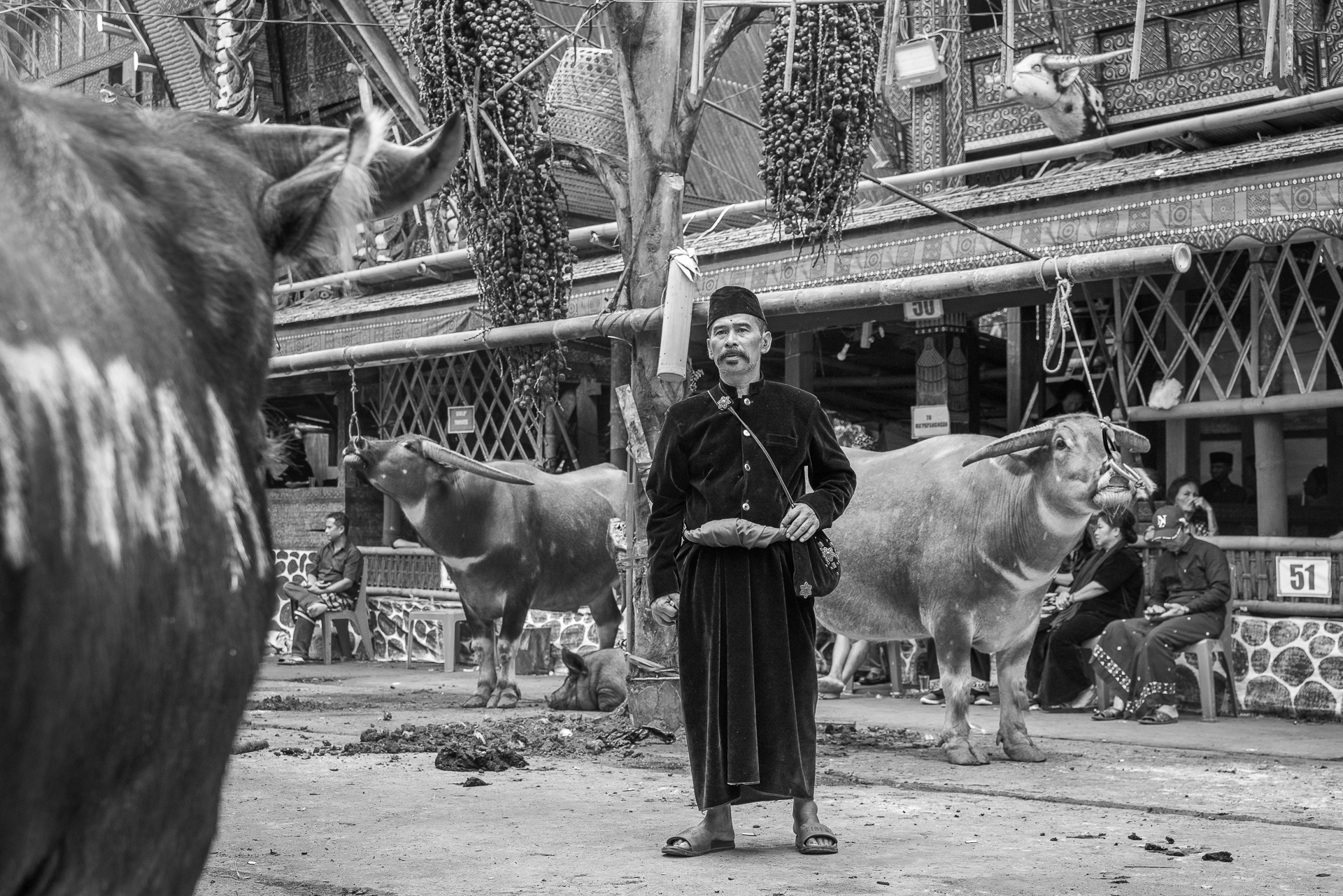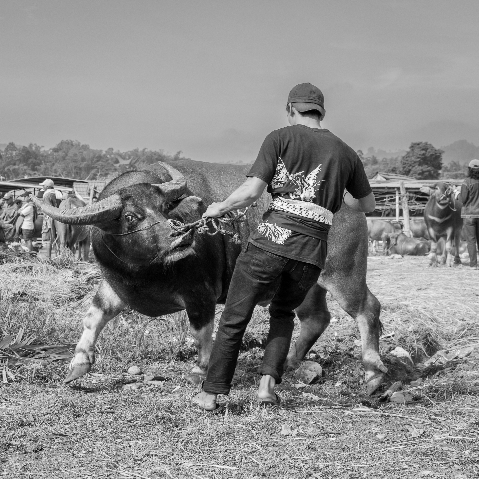 Auf dem Bolu-Markt in Rantepao werden Büffel, Schweine und Hühner gehandelt. Tiere für Rituale, für Abschied, für Status.